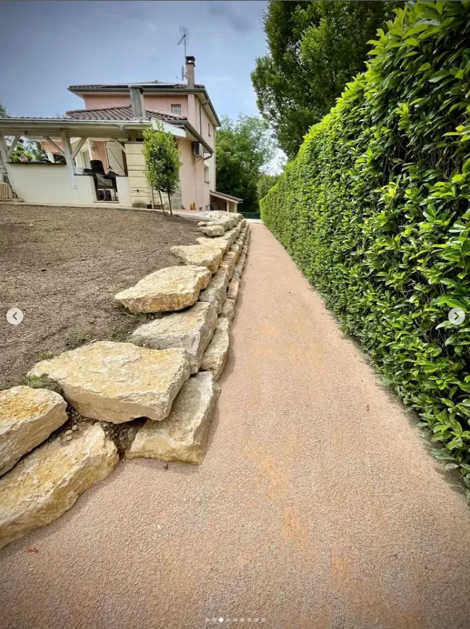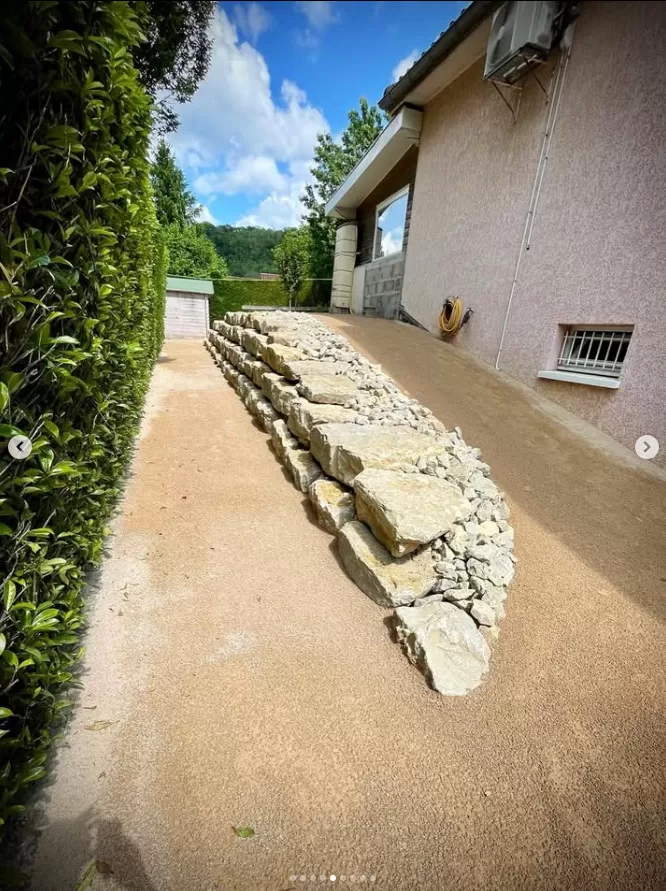 - Enrochement avec accès difficile : la pose de blocs rocheux est pensée pour stabiliser le terrain et embellir les extérieurs, même dans des zones complexes.